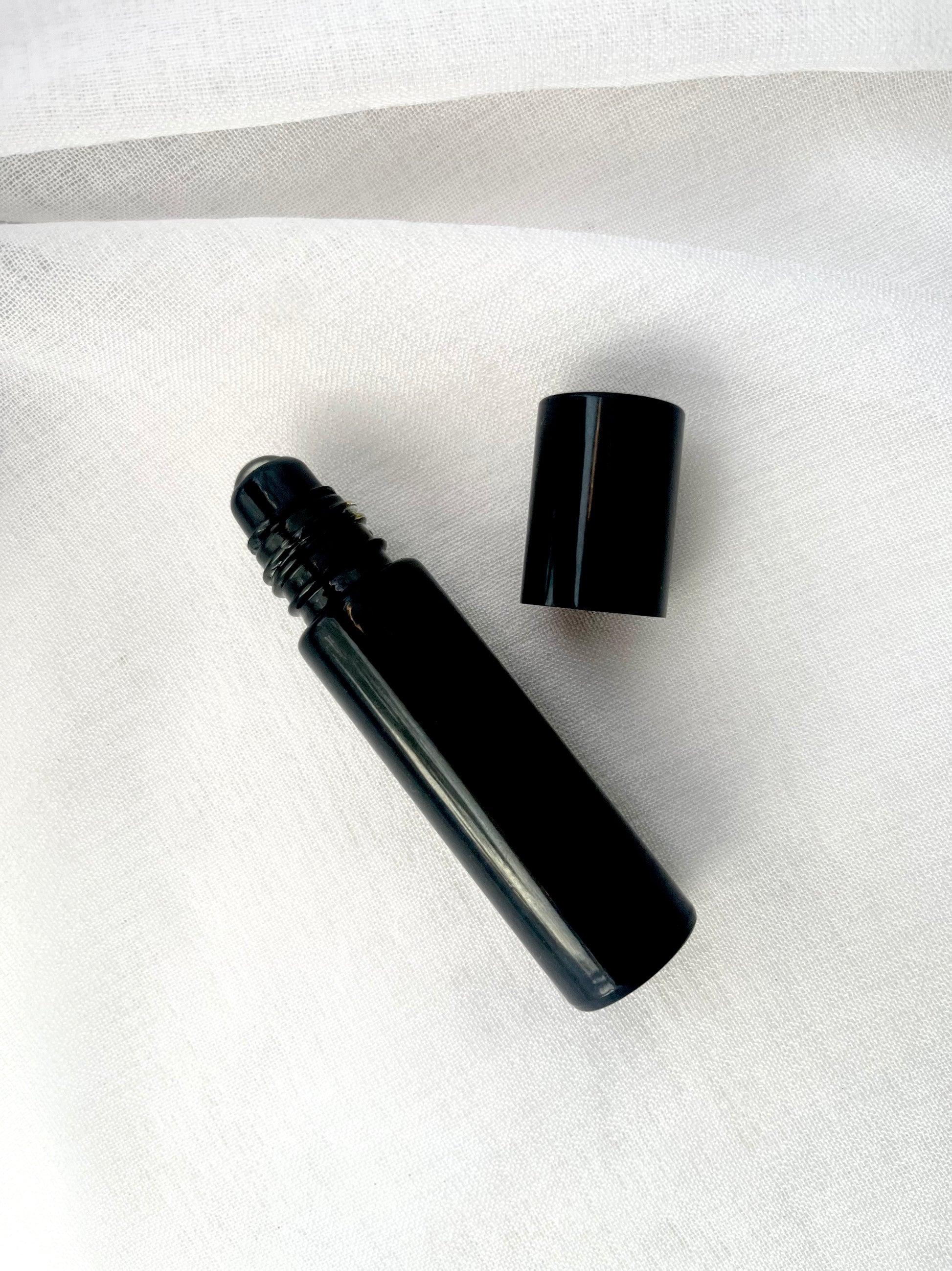 10ml roller bottle with Black Obsidian Crystals and Essential Oils. Hand poured in small batches in Australia.